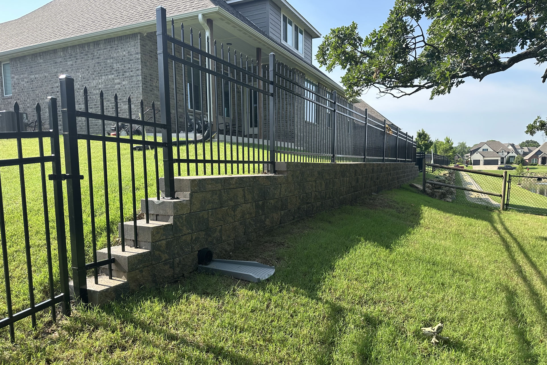 Retaining walls provide reliable yard drainage by controlling water runoff, preventing soil erosion, and creating stable, level ground—an essential solution for Oklahoma’s expansive clay soil and heavy seasonal rainfall.